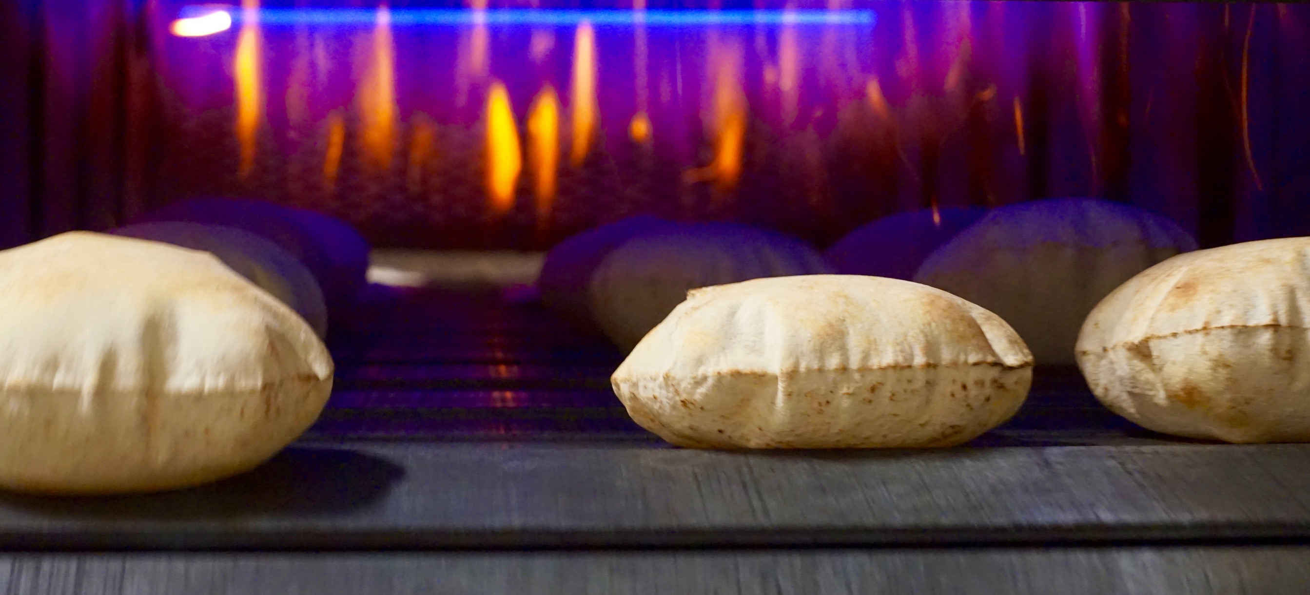 Baking our pita in the early days consisted of mixing ingredients in a small Hobart mixer, cutting the dough with an archaic divider and shaping it manually. The process was so labourious that work days consisted of 15 straight hours in extreme heat generated by an oven that exceeded 1000°F.